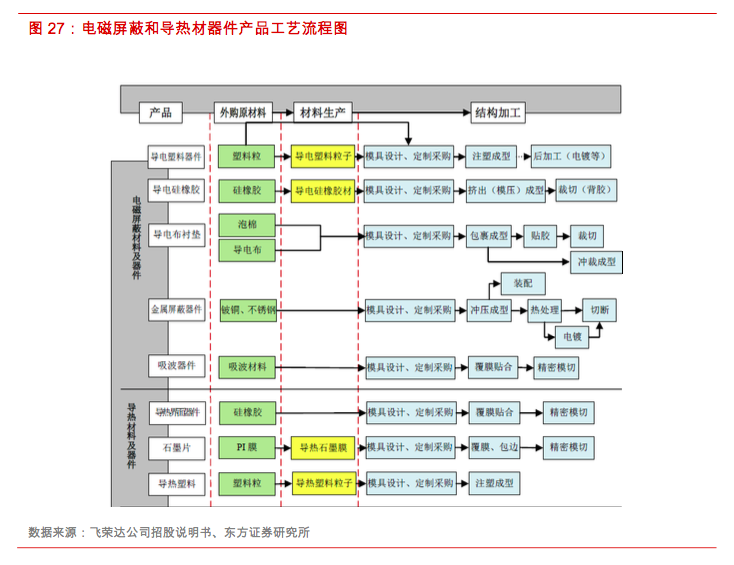 同时,电磁屏蔽和导热材料生产环节毛利率一般高于器件加工环节,因此深耕材料环节的公司有望获得高于下游的毛利率水平,而同时具备材料生产与器件加工的公司毛利率水平也有望高于普通的器件加工厂商。