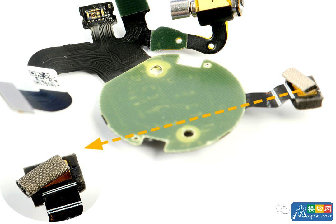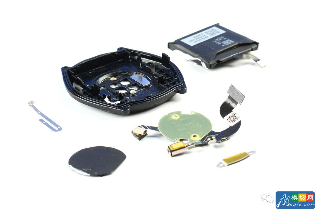 通过拆解可以发现,华为WATCH GT内部由三块电路板(主板PCB、心率板PCB+FPC、按键板FPC)组成,同时气压传感器和线性马达以及电池都连接在心率板上面。