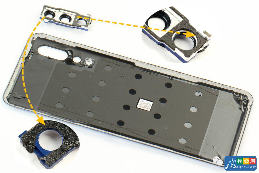 后置摄像头保护盖采用大量泡棉胶与后盖固定,可直接拆下。