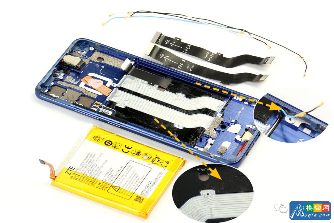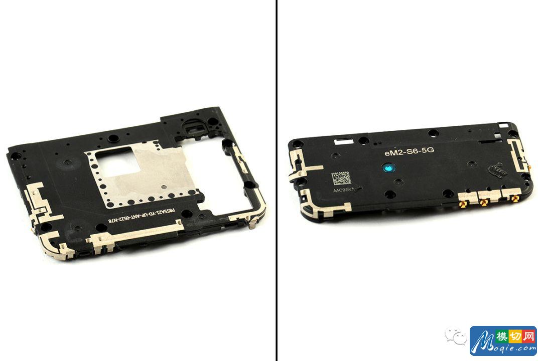 与之前的4G手机相比,AXON 10 Pro 5G版除了搭载有5G芯片模块外,在手机的天线上也做了改进。除了内支撑上下两端的天线外,主板盖和扬声器模块上也添加了多处天线,保证了5G的上网速度。