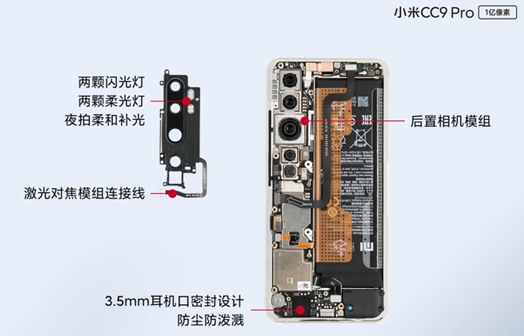 从官方的拆机可知,小米CC9 Pro的做工很讲究。