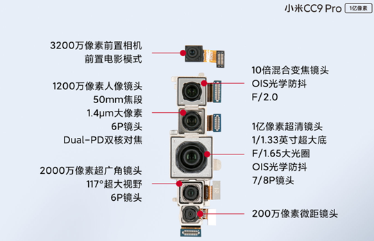 在大家关心的相机模组方面,小米也放出了CC9 Pro前后摄像头的全家福拆机图片。