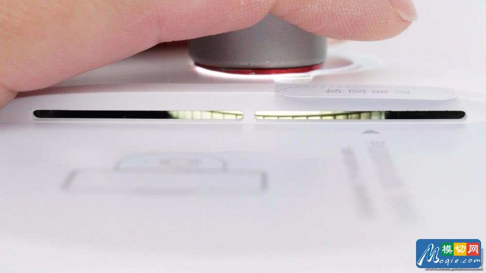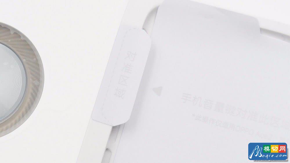 在风扇和无线充交界处贴有提示贴纸,用户在放置手机时将音量调整按键对准贴纸位置,才能获得最好充电效果。