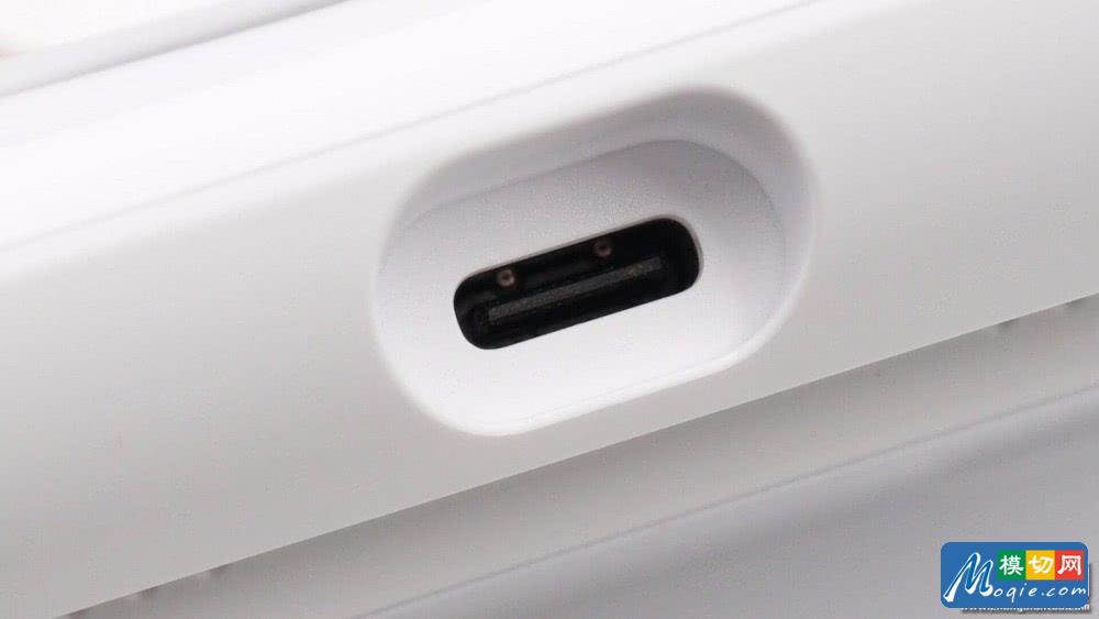 机身侧面配有一个USB-C输入接口,黑色胶芯不露铜。