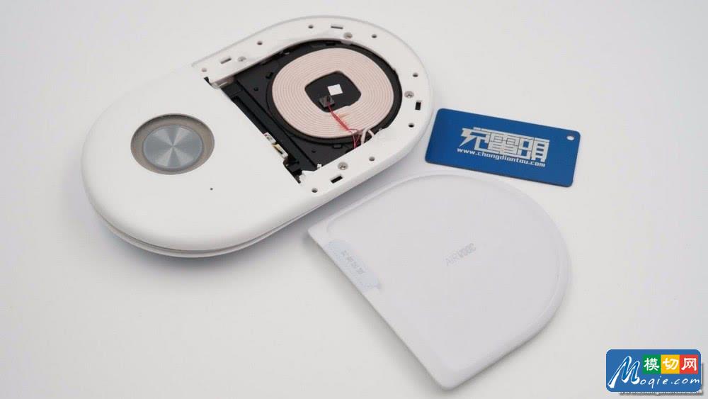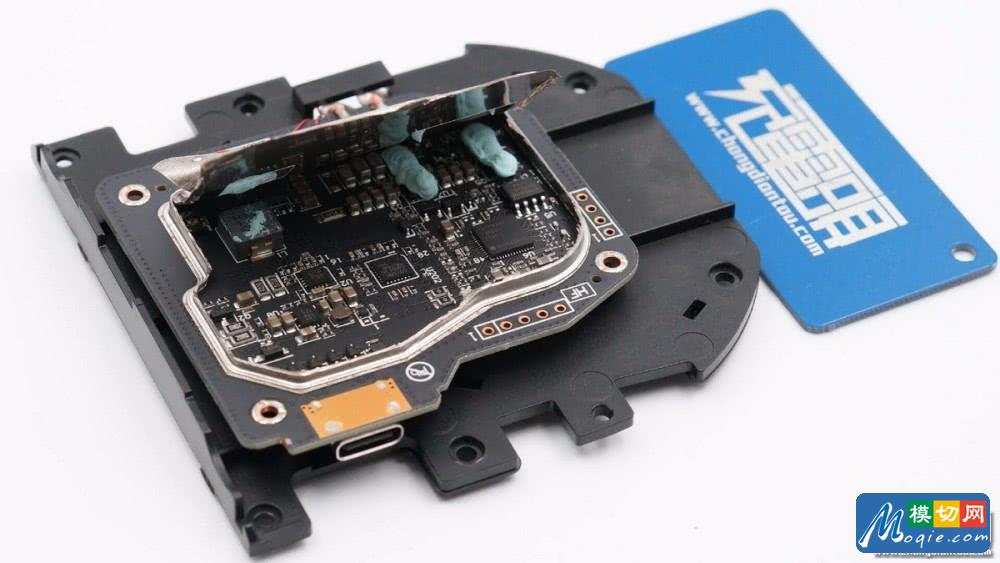 首先先来看看无线充电器部分,无线充电电路上焊接金属屏蔽罩,并且还贴有金属铜箔贴纸。
