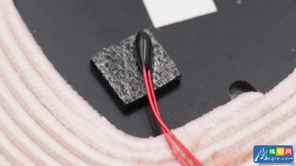 主板另一面放置无线充电线圈进行输出,并配有热敏电阻进行温度监控。