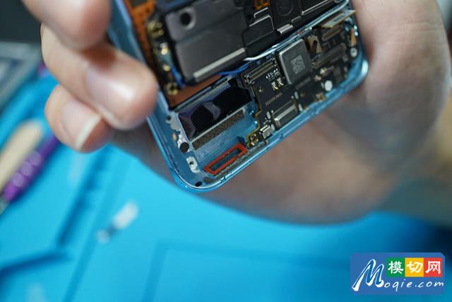 这次小米11采用了哈曼卡顿的双扬声器设计,在副板方面,能看到在麦克风位置还有海绵槽保护的细节,以及SIM卡槽、指纹识别和扬声器都在这个区域。