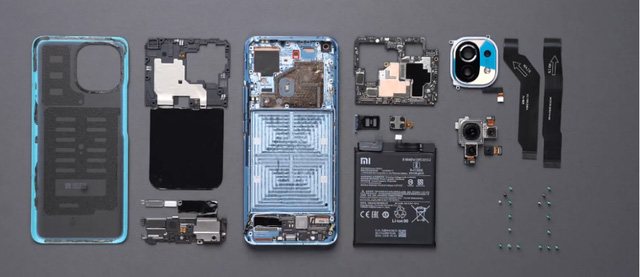 小米11采用比较常见的三段式结构,整机共采用18颗螺丝固定,拆解并不难,散热方面,主板、电池、摄像头、屏幕、无线充电线圈都经过散热处理。虽然该机并不支持防水,但在USB接口、卡托和扬声器处采用硅胶保护,能起到一定的防尘防水作用。