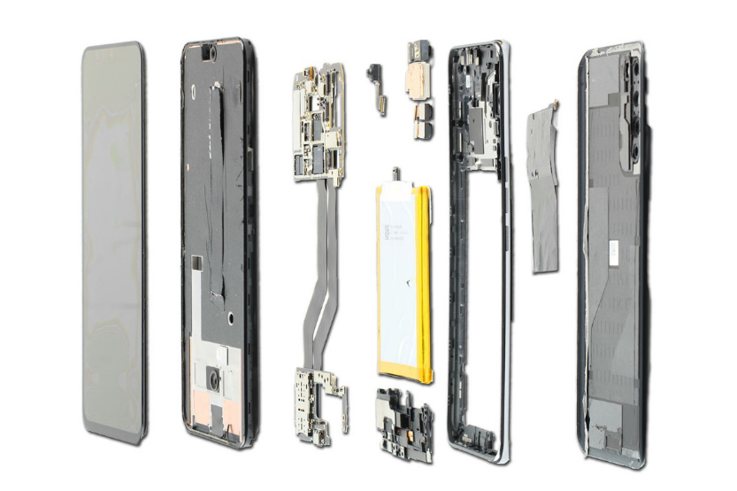 中兴天机Axon 20 5G采用三段式设计,整机使用了 24颗螺丝,拆解难度中等。在结构上使用中框加内支撑形式,扬声器模块和副板盖是分离设计,电池使用的塑料胶纸进行固定,屏下发声的器件使用保护盖盖住。SIM卡托处,USB接口处套均有硅胶圈用于防水。整机内部通过石墨片+散热硅脂+铜箔+散热铜管的方式进行散热。