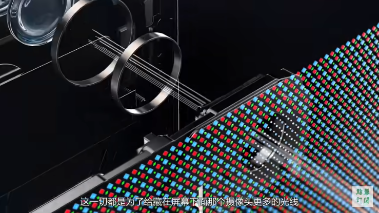 这款手机号称采用CUP全面屏技术,其实各家在做屏下摄像头的思路都类似,就是把摄像头上的屏幕像素点,相较周围的做得更小一些,并且把各类线路的材料换成透明的或隐藏起来。唯一的目的,就是让屏幕下的摄像头能得到更多光线。