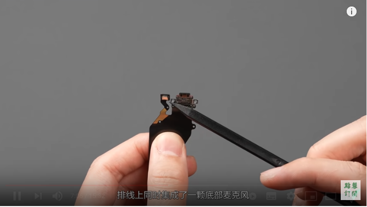 Type-C接口内侧有防尘防水的胶圈,排线上同时集成了一颗地步麦克风。