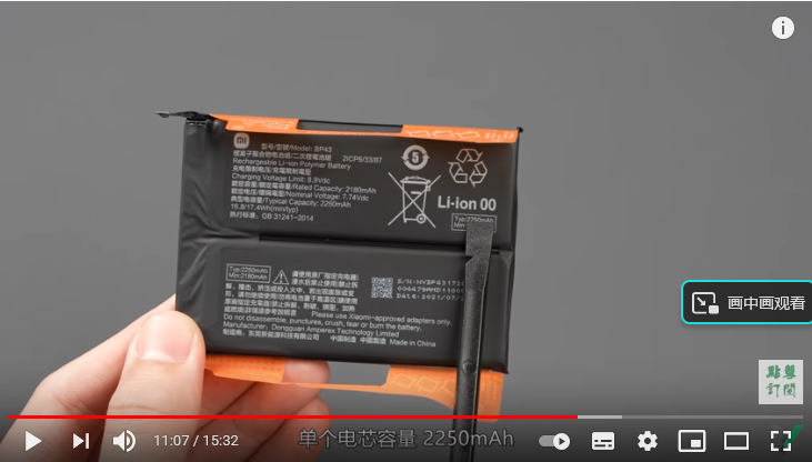 双电芯设计,单个电芯容量2250mAh,总容量4500mAh