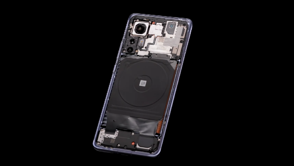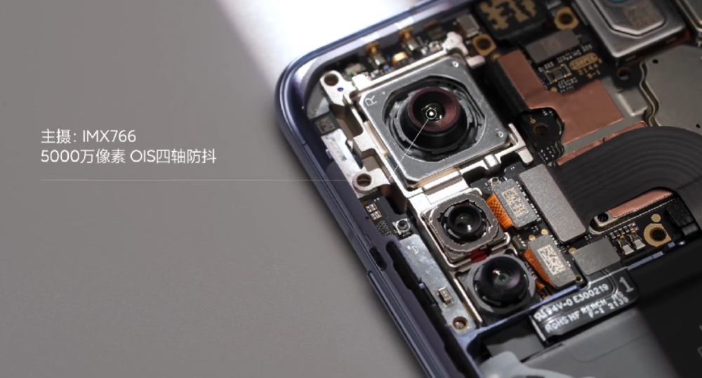 打开后盖,映入眼帘的是无线充电圈,然后是后置5000万像素主摄,采用了索尼IMX 766传感器,体积相比另外两颗镜头要大得多,支持OIS四轴防抖,以及一颗3200万像素前摄。