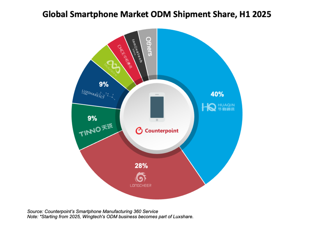 2025年上半年全球ODM智能手机出货量及厂商排名